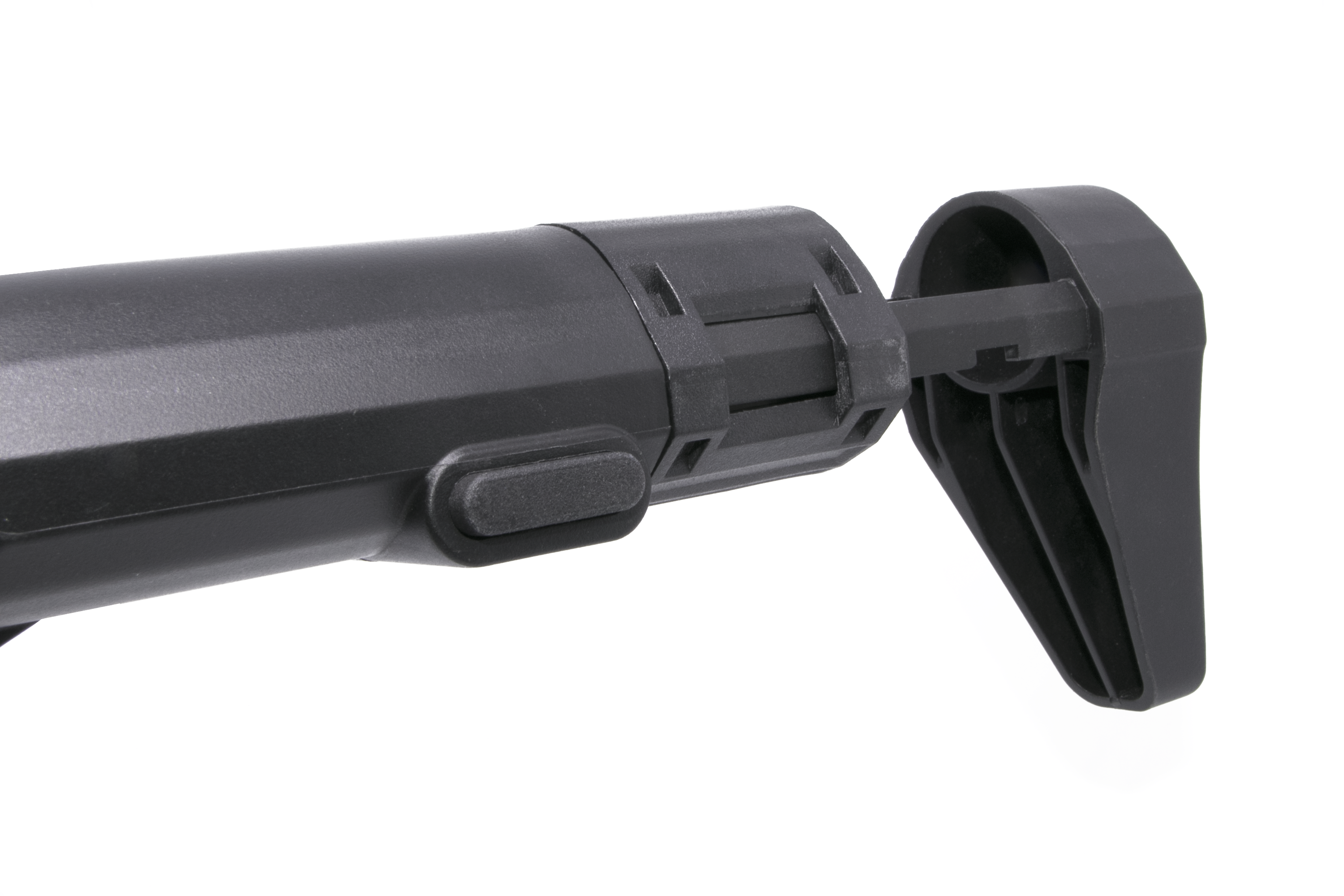 Once the BEU™ is installed there will be 2 points of adjustment of the stock-butt depending on your needs. It will continue to use the locking mechanism from the original compartment.