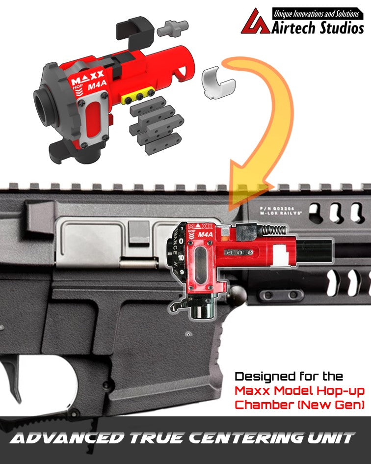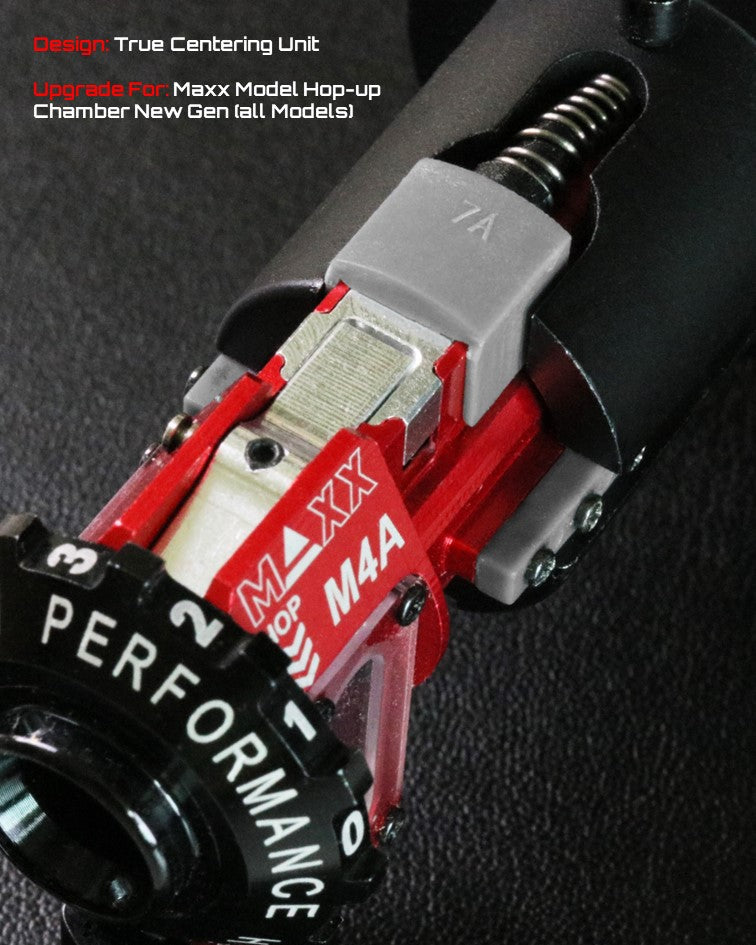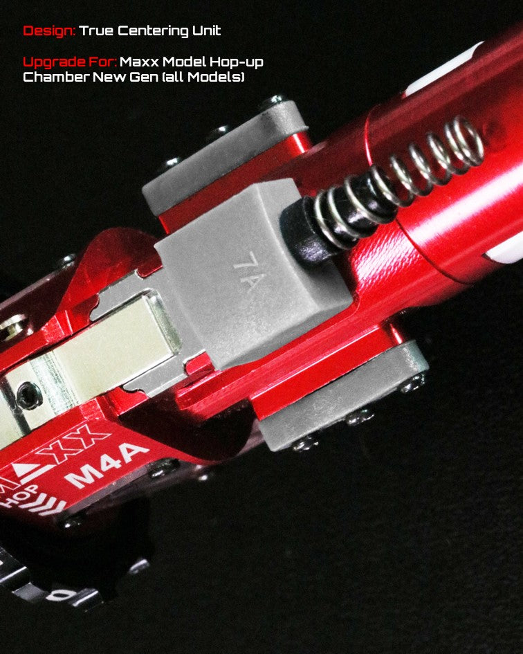 The True Centering Unit (TCU) is Designed for the Maxx Model (New Gen, all models) specifically to prevent the hop-up unit from rotating from side to side. This is caused by the manufacturing tolerances of the hop-up installed into the outer barrel. Additionally, the movements of the magazine while shooting may cause the hop-up unit to sway further causing major inconsistencies to your BB trajectory.